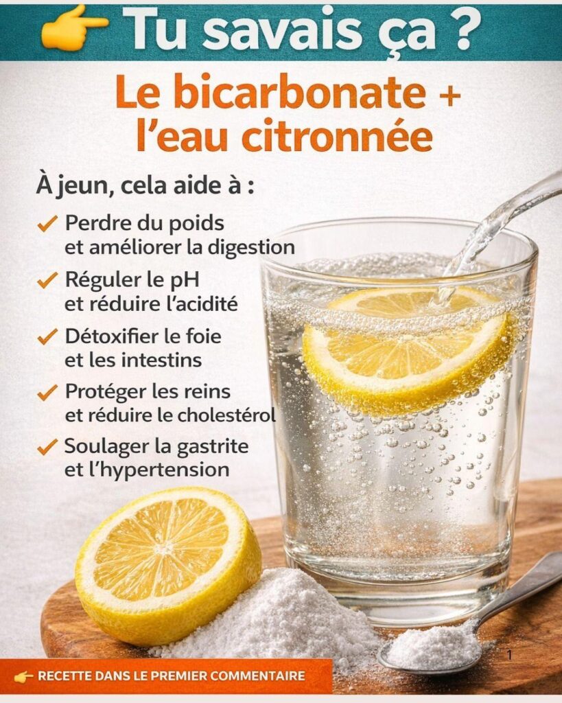 C’est précisément là que l’eau citronnée au bicarbonate intervient comme un outil simple mais extraordinairement efficace. Non seulement elle agit rapidement, mais elle présente également l’avantage d’être économique, naturelle, et dépourvue d’effets secondaires nuisibles lorsqu’elle est consommée de manière responsable.